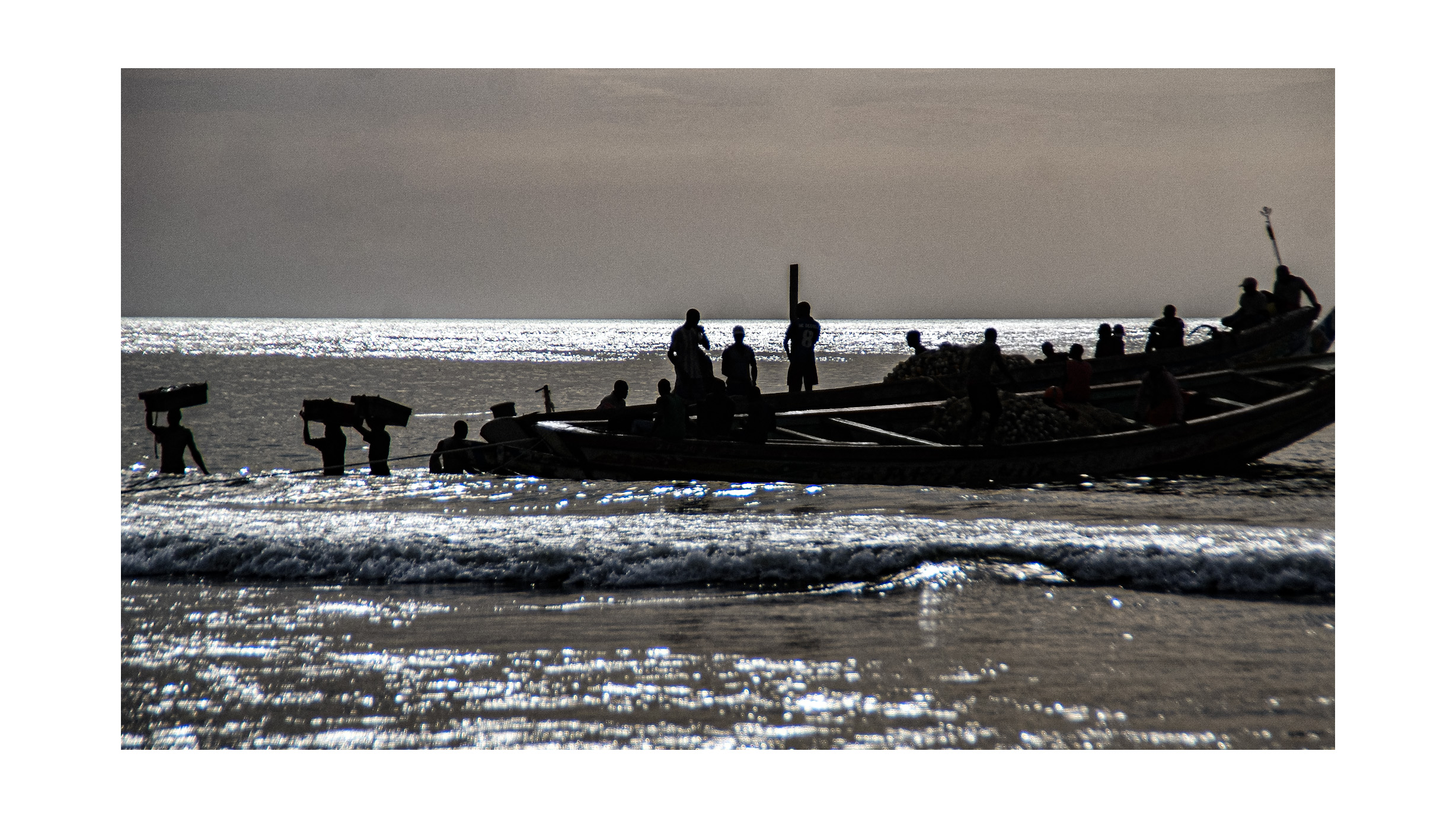 This backlit denunciation images are characterized by the use of backlighting, an aesthetic choice that goes beyond simple visual effect. In these photographs, light is often relegated to the margins, enveloping human figures in a dense, layered darkness. This play of light and shadow is not accidental: I use this contrast to highlight the tension between the dignity of traditional work and the inhumane conditions that too often accompany it. These photographs do not simply capture everyday fishing scenes, but transform them into a visual narrative.